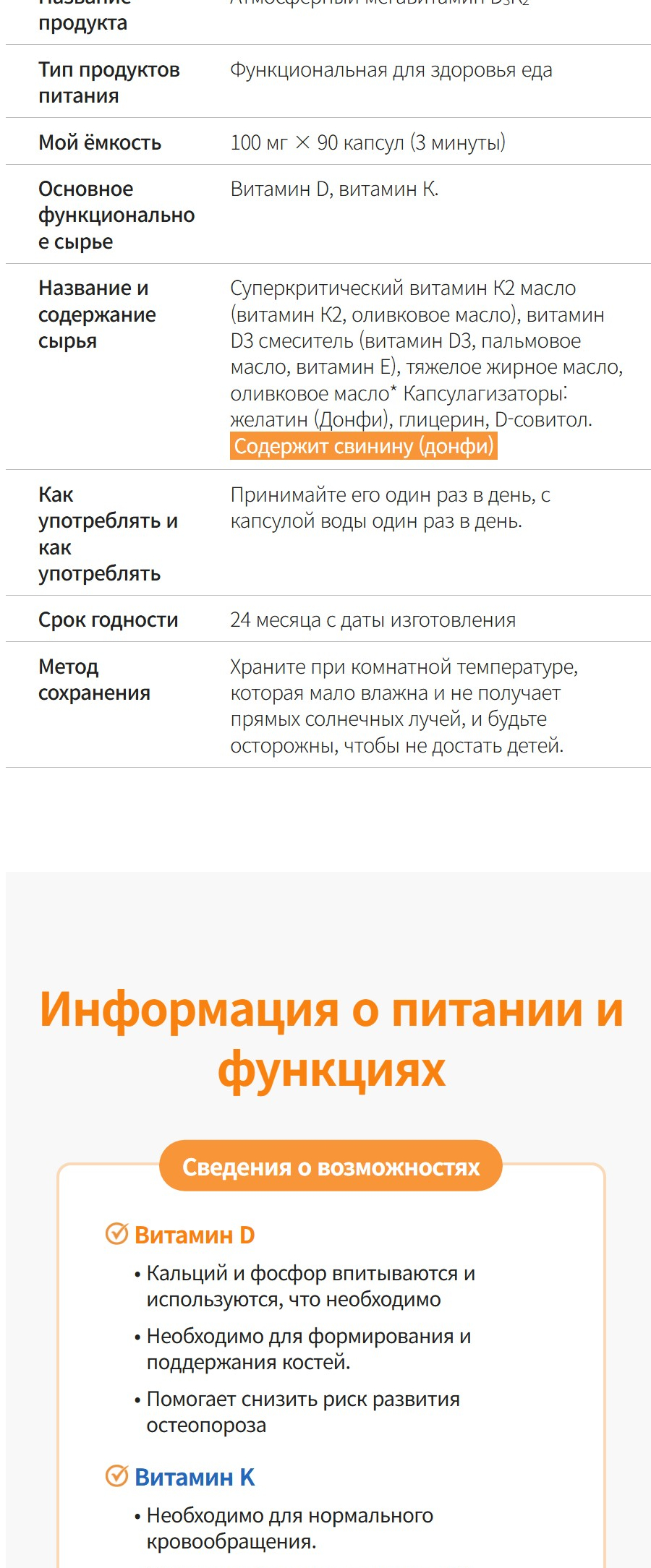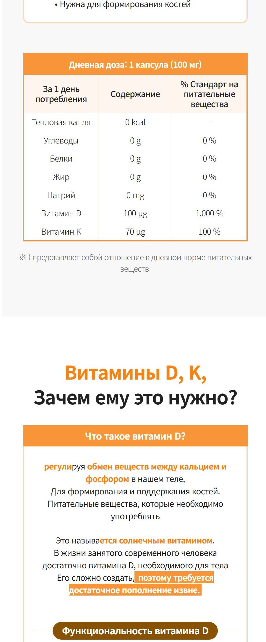 – Витамин D3 (4000 IU) — способствует усвоению кальция, поддерживает иммунитет